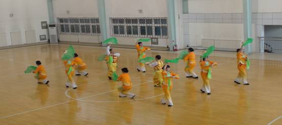 比赛正式开始,参赛队员在优美的音乐伴奏下,有节律地运球,上下绕旋,左右旋转,换握抛接,头上绕环,左右翻身,个个精神饱满,动作优美连贯。小小的柔力球在他们手中上下翻飞,颇具美感。在健身秧歌表演中,扇子在她们的手中运用自如,折叠流畅,服装和扇子相互映衬恰到好处。在新疆健身操表演中,她们身着民族服装、在音乐的节拍下灵活的表演、在他们身上看到的只有年轻、健康,充满活力与韵致的表演一次又一次赢得了观众的热烈掌声,将现场气氛推向了高潮。
